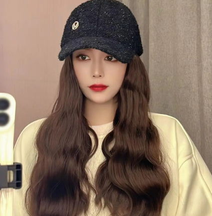 7分鐘前最新款氣質格紋盆帽假髮 帽子和假髮二合一,優雅又時尚 - NT$1559三入組
