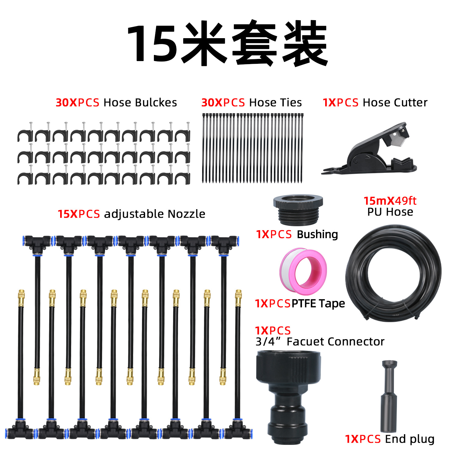 7分鐘前萬向噴頭一體自動澆花器 - 霧化套裝~15米~帶釘【一入組】NT1388
