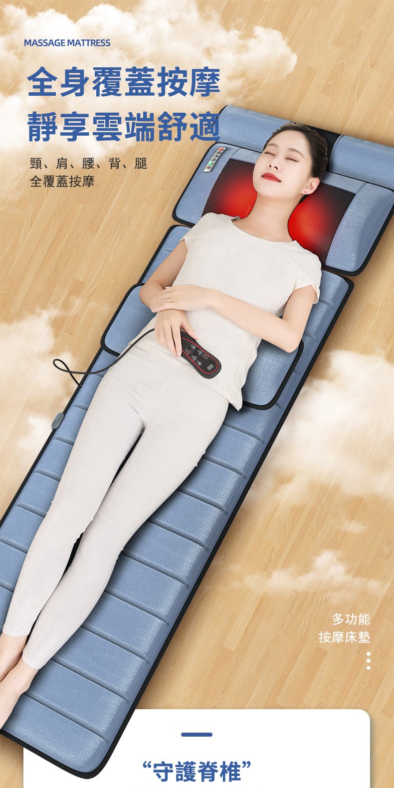 11分鐘前多功能全身按摩床墊 | 電動加熱頸椎、腰部、背部、腿部全方位按摩器,舒緩身心疲勞 - 6鍵旗艦款(6鍵揉捏+震動+氣囊+10電機+腰部熱敷)