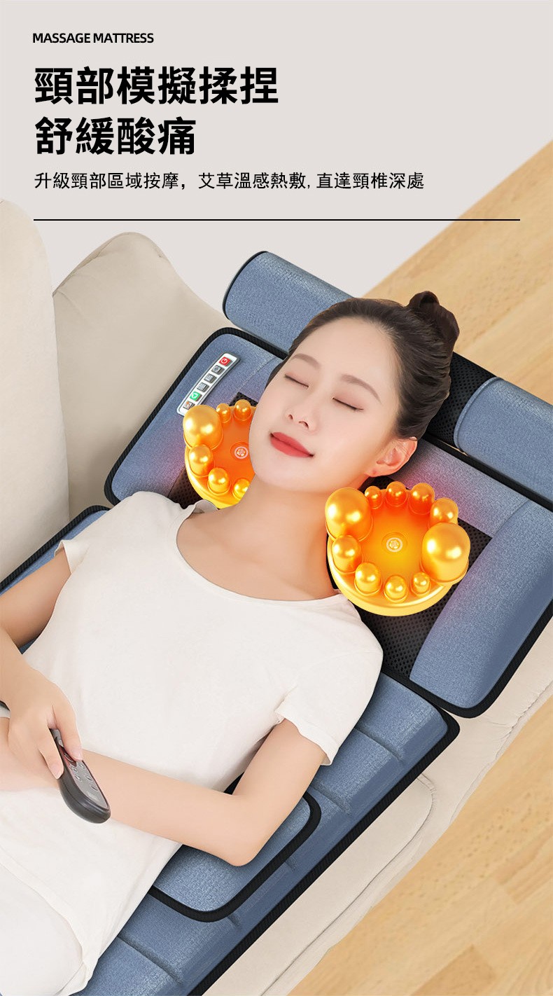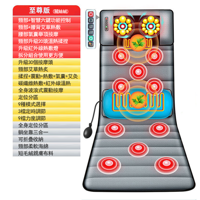 5分鐘前多功能全身按摩床墊 | 電動加熱頸椎、腰部、背部、腿部全方位按摩器,舒緩身心疲勞 - 6鍵旗艦款(6鍵揉捏+震動+氣囊+10電機+腰部熱敷)