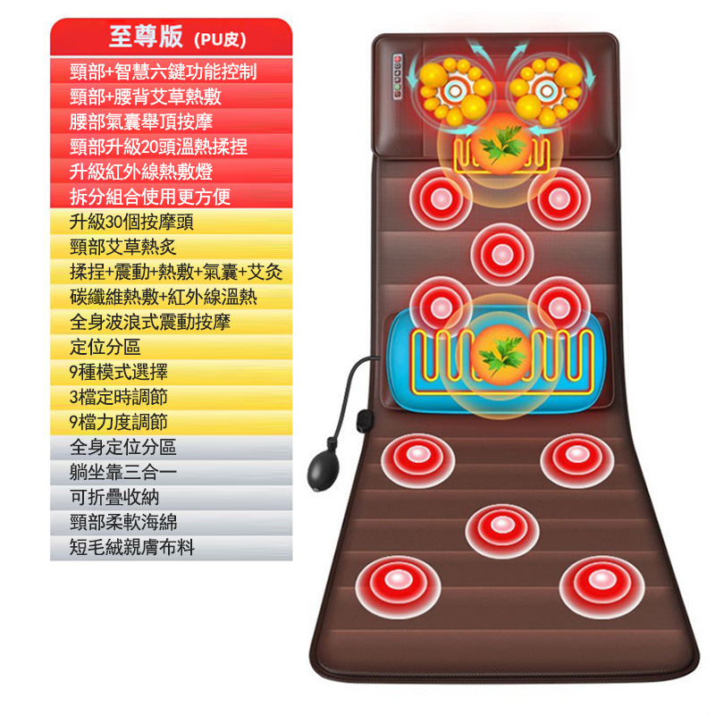 5分鐘前多功能全身按摩床墊 | 電動加熱頸椎、腰部、背部、腿部全方位按摩器,舒緩身心疲勞 - 豪華皮質款五合一可拆卸(藥枕+頸部滾輪+震動加熱+【腿部加熱揉捏】)