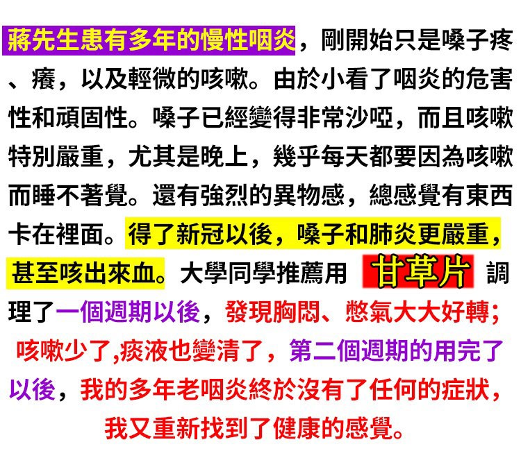 11分鐘前【權威醫師推薦 】咳嗽氣喘止不住,快用甘草片! ! 天然植物草本! 修復肺部損傷,保護肺部健康,每次一顆,化痰止咳,清理肺部有害垃圾! 三十年的老肺病全好了!免疫力也好起來了!! - 療程鞏固裝【保護肺部健康,清理肺部有害垃圾!】12入組--NT$1598