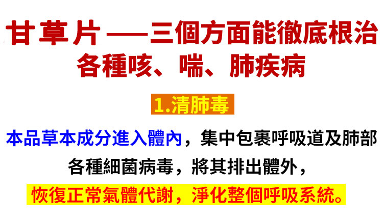 半小時前【權威醫師推薦 】咳嗽氣喘止不住,快用甘草片! ! 天然植物草本! 修復肺部損傷,保護肺部健康,每次一顆,化痰止咳,清理肺部有害垃圾! 三十年的老肺病全好了!免疫力也好起來了!! - 療程鞏固裝【保護肺部健康,清理肺部有害垃圾!】12入組--NT$1598
